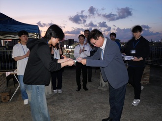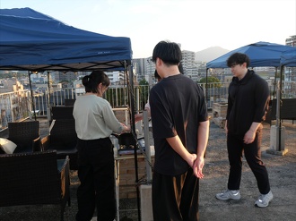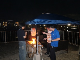 火を囲みながら若戸大橋のライトアップを背景に内定式を実施。開放的な雰囲気の中で、未来の仲間や先輩社員と語り合い、笑顔あふれるひとときを過ごしました。