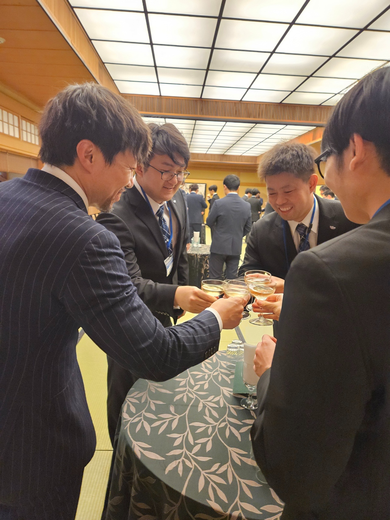 入社式後には役員や先輩社員との懇親会を実施しました。最初は緊張していた新入社員も、時間が経つにつれて笑顔が見られるようになり、職場の雰囲気や仕事のやりがい、時には苦労話など、先輩からさまざまな話を聞く貴重な機会になったと思います。