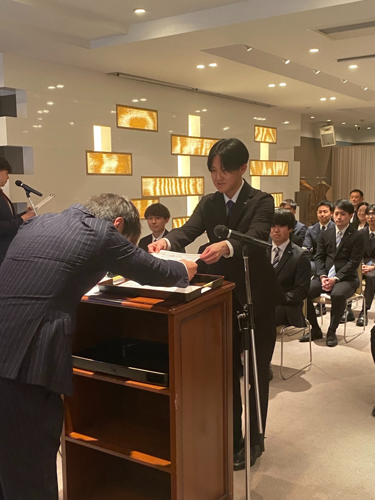 式では、社長からの激励の言葉や辞令交付が行われ、一人ひとりが社会人としての自覚を新たにする機会となりました。また、決意表明では力強い言葉が述べられ、今後の活躍が楽しみになる内容でした。