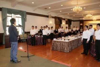 模擬体験終了後は2017年度新入社員との懇親会を行いました。最初は内々定者の皆さんも緊張していましたが、アルコールが入るにつれ緊張も解け、歓談に花を咲かせていました。先輩社員から営業所の雰囲気や現場作業の事など色々な話やアドバイスを聞くことができたみたいです。