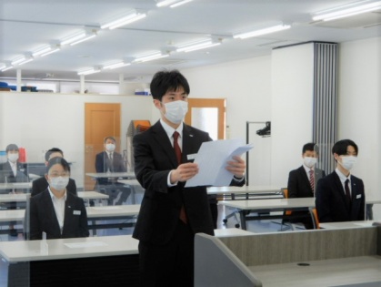 今回は、新型コロナウイルス感染防止対策や式次第の一部変更など、例年とは異なる入社式となりました。