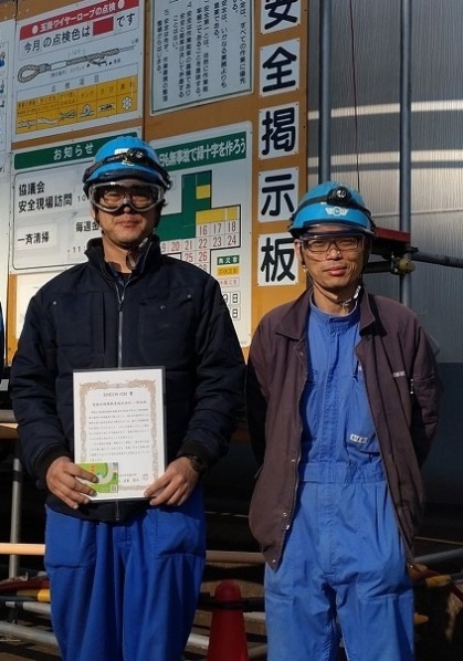 検査で要補修箇所を発見し、設備のトラブルを未然に防止したことによりお客様から表彰されました。